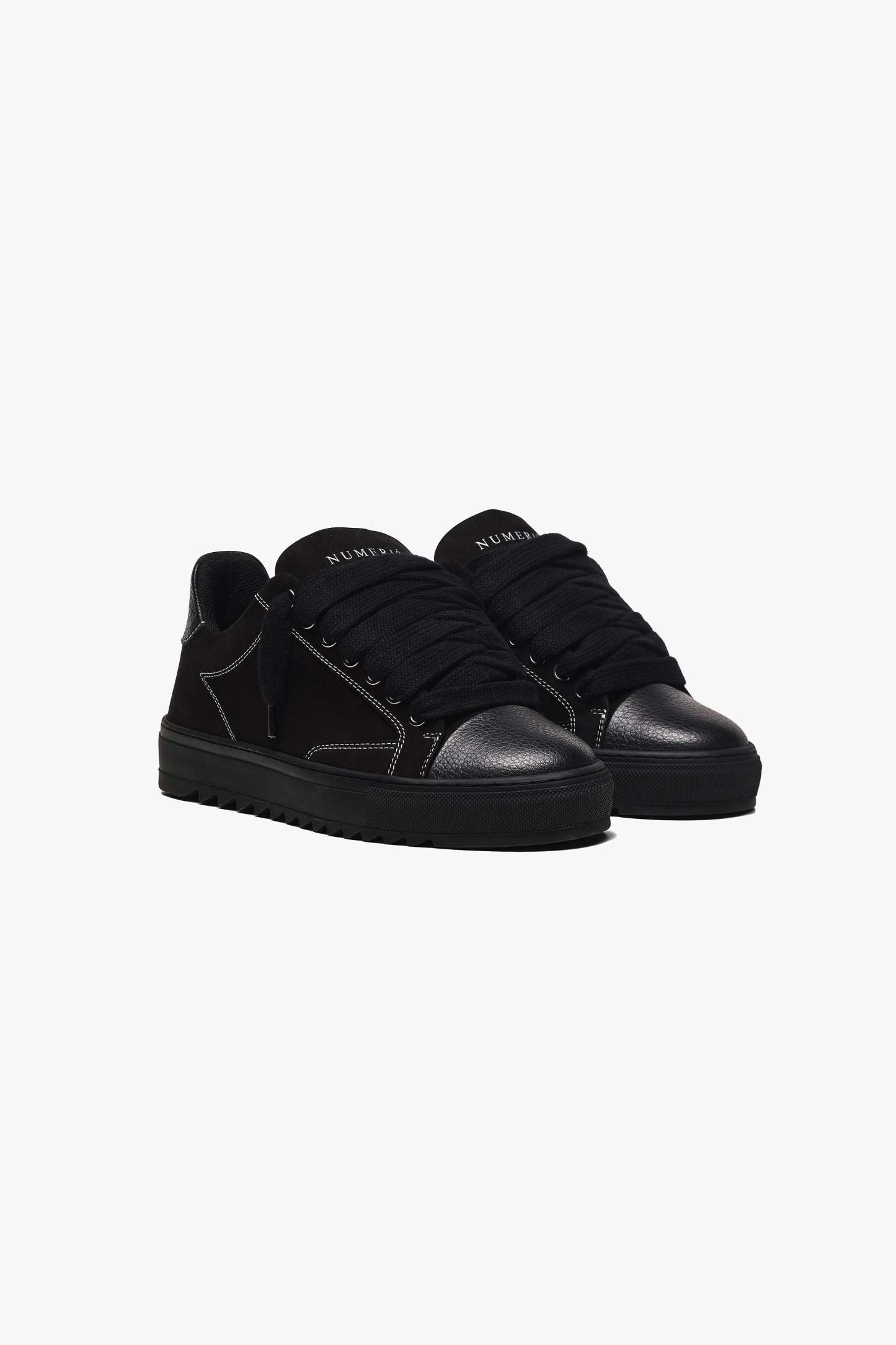 The Atelier trainer was inspired by the Parisian lifestyle. Every stitch and detail was meticulously designed in a Parisian workshop. Carbon features a premium black nubuck upper with crisp white stitching and finished with our signature pebbled leather black toe cap, sitting on top of our exclusive black complex rubber sole. The interior of the trainer features black collar lining providing unrivalled comfort. The final touches see our Numeriś branding on the heel and tongue of the shoe.