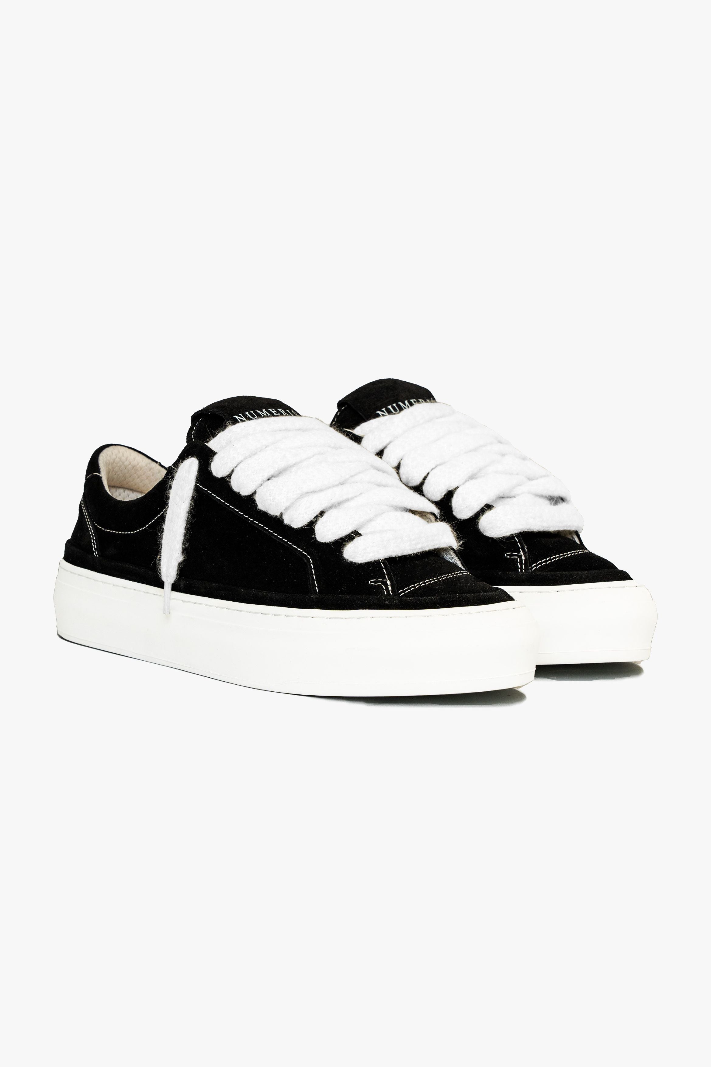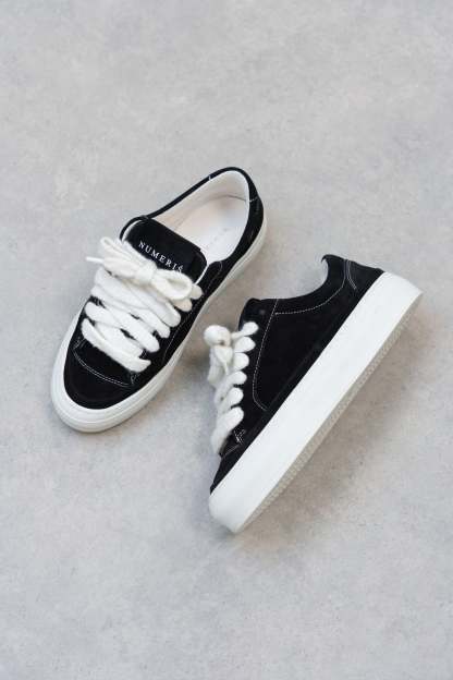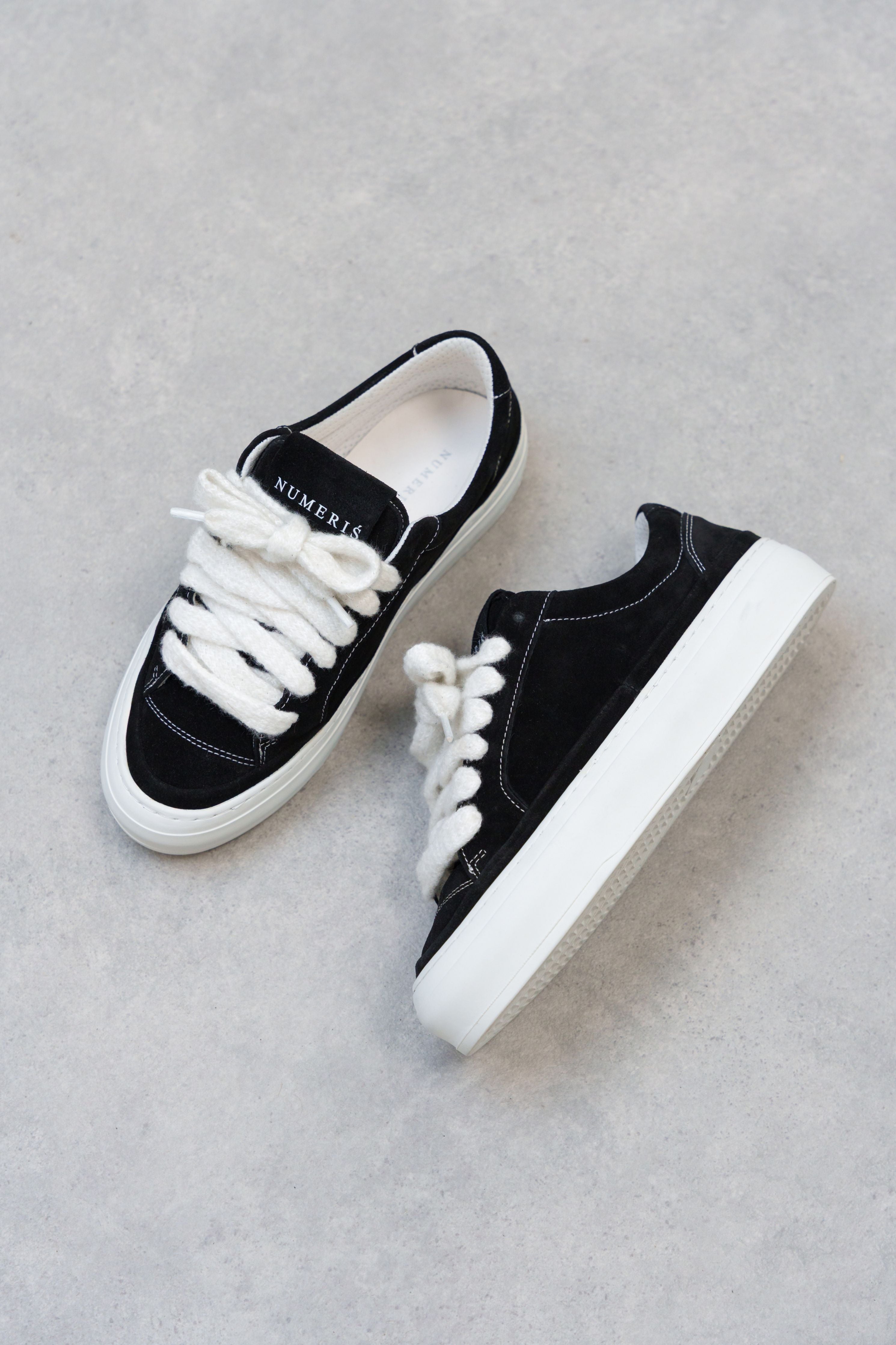 The Aero colourway features a full premium Italian black nubuck upper, ultra-soft white mohair laces, and our signature Numeriś tongue tag — all sitting atop a brand new, custom-engineered sole made exclusively for the Athena line.