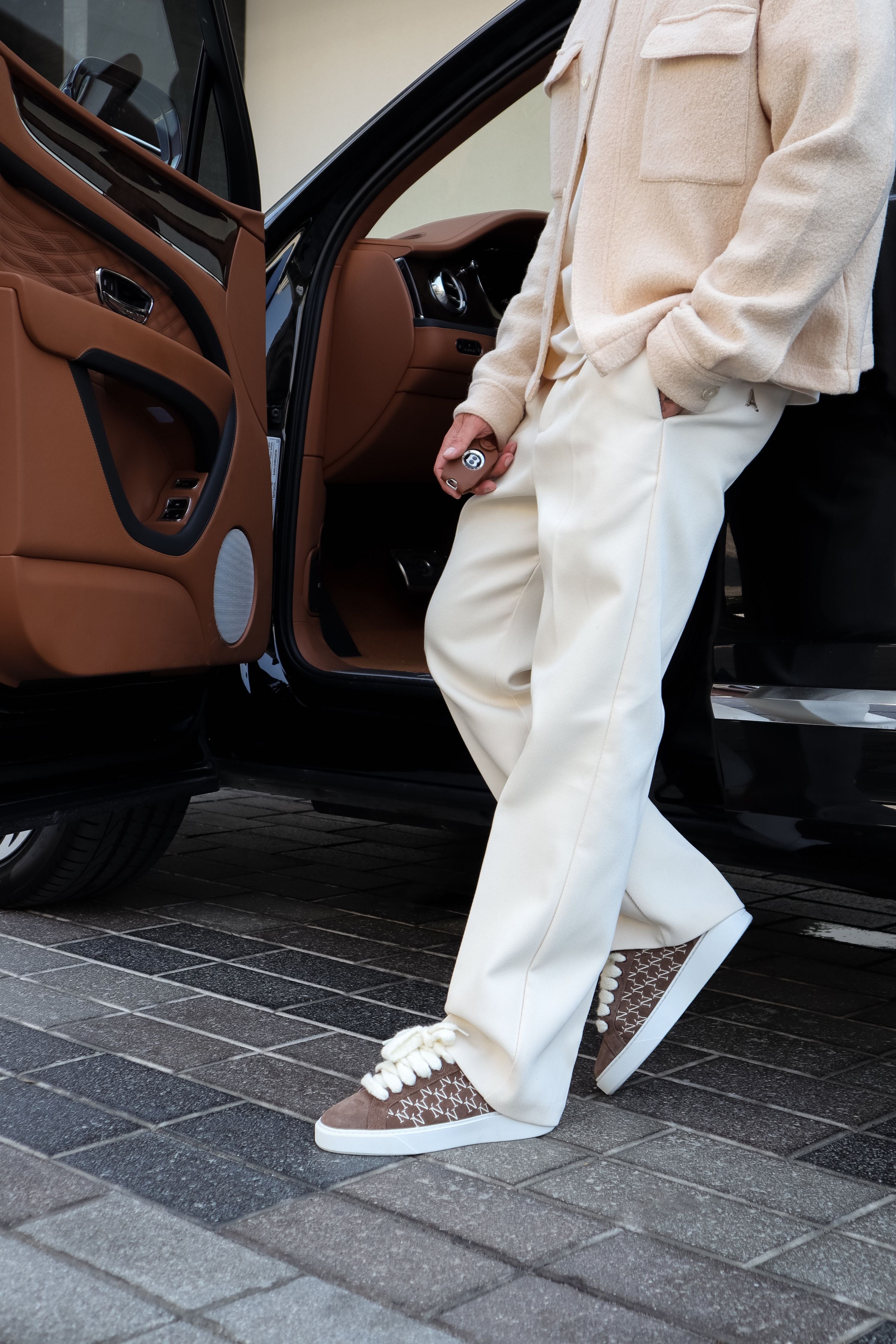 The Sigńet sneaker features Italian a light brown suede, 10mm mohair white laces and matching side panels which are accompanied by our sleek hand embroidered Ń monogram logo. The interior of the sneaker features white collar lining providing unrivalled comfort. The upper rests perfectly on top of our brand new complex rubber sole, exclusively made for Sigńet. Our distinct silver logo is positioned across the tongue.