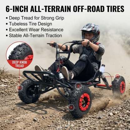 Includes an adjustable throttle limiter valve to cap speed for new riders, helping parents set a comfortable pace. With supervision, it works as a go kart for kids, and it’s also a go kart for teens to build confidence on backyard trails and private property paths.